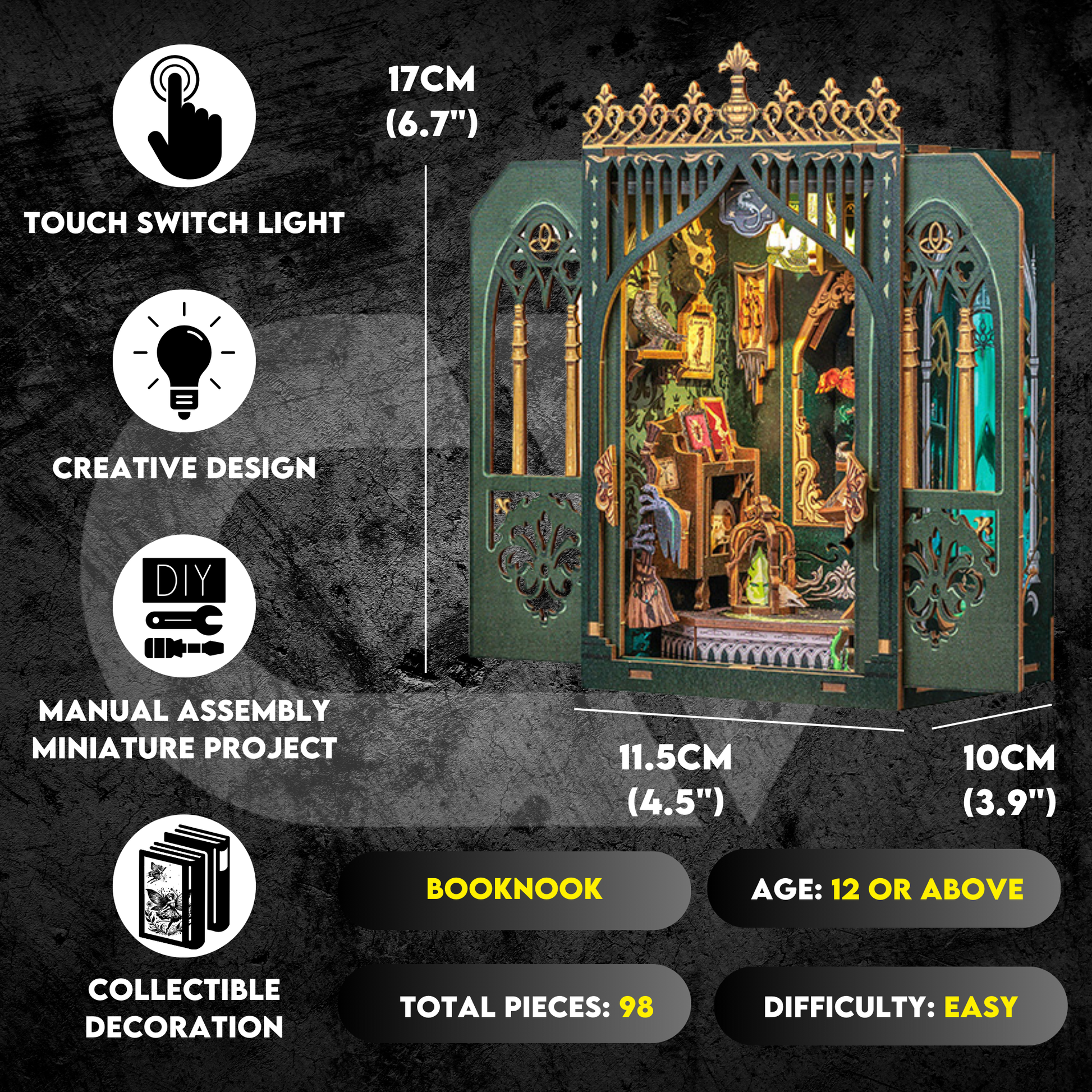 All of our booknook kits is designed to be user friendly for all skill level DIY builder. Each of them comes with clear & step-by-step instructions to guide your throughout the whole DIY project.