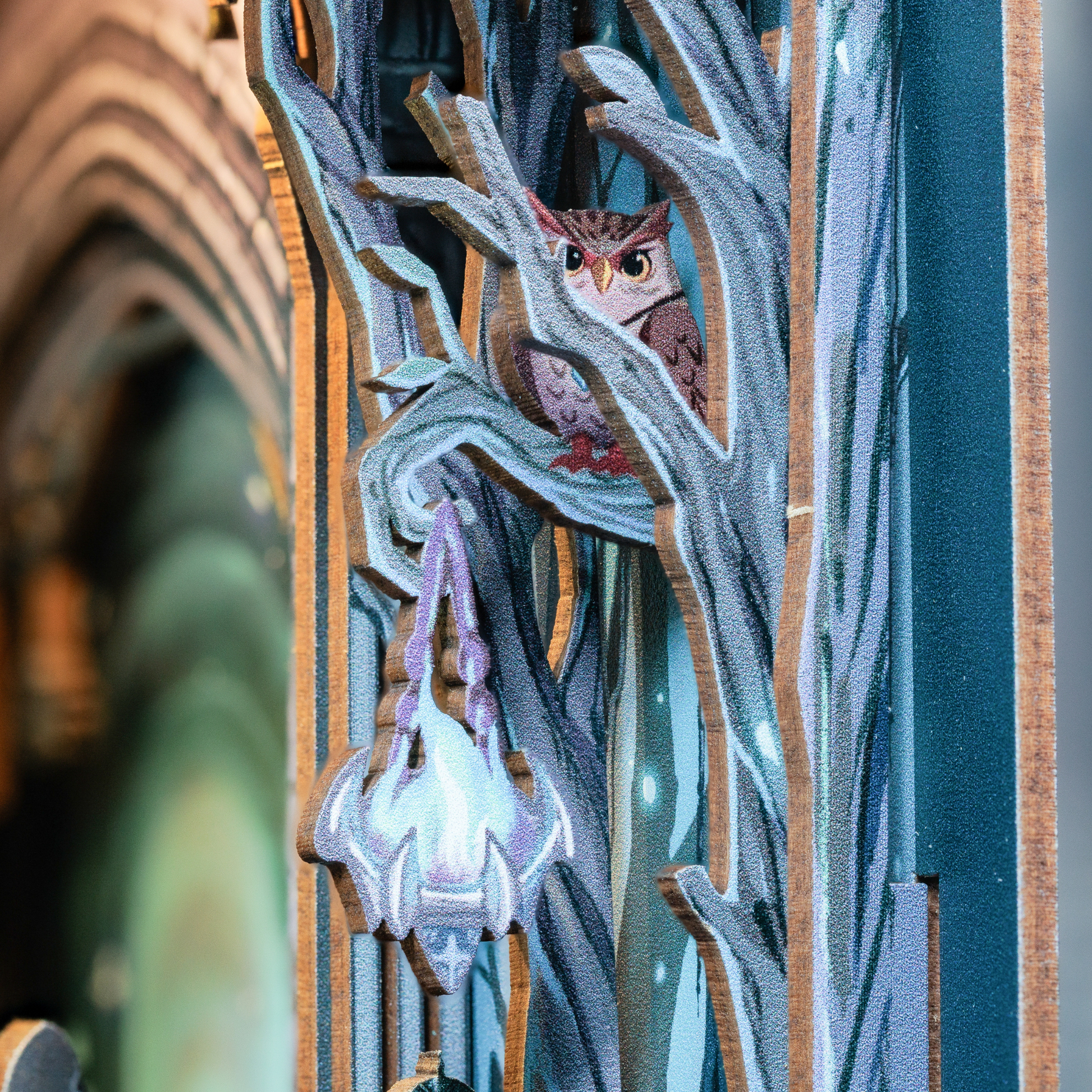 High in the twisted branches surrounding the gateway, a lone owl perches in silence. Said to be a familiar bound to the original bloodline of the guardians, it watches all who approach — measuring hearts, sensing fear. Its eyes gleam with arcane insight, and some claim it speaks in riddles when the wind is right.